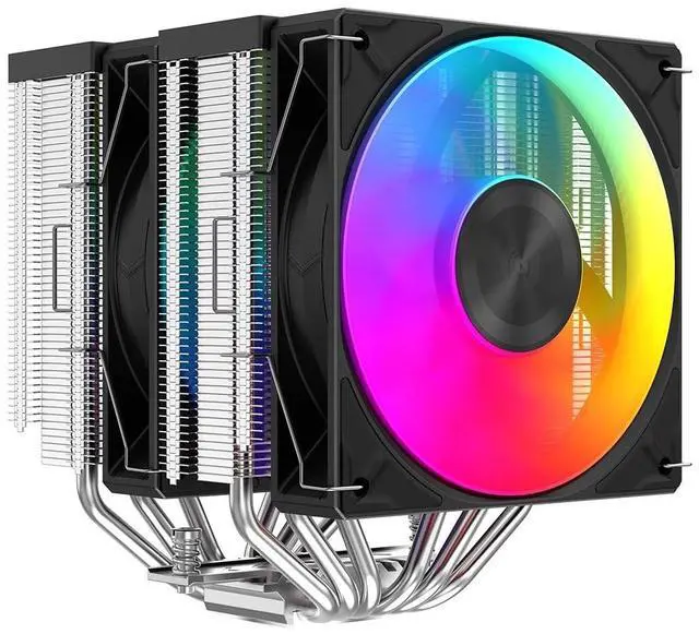 Heat Pipes: Equipped with six composite heatpipes and a CNC-machined nickel-plated copper base, this dual tower cpu cooler provides efficient heat transfer and stable performance under heavy loads. ^^ Optimized Fin Array for
