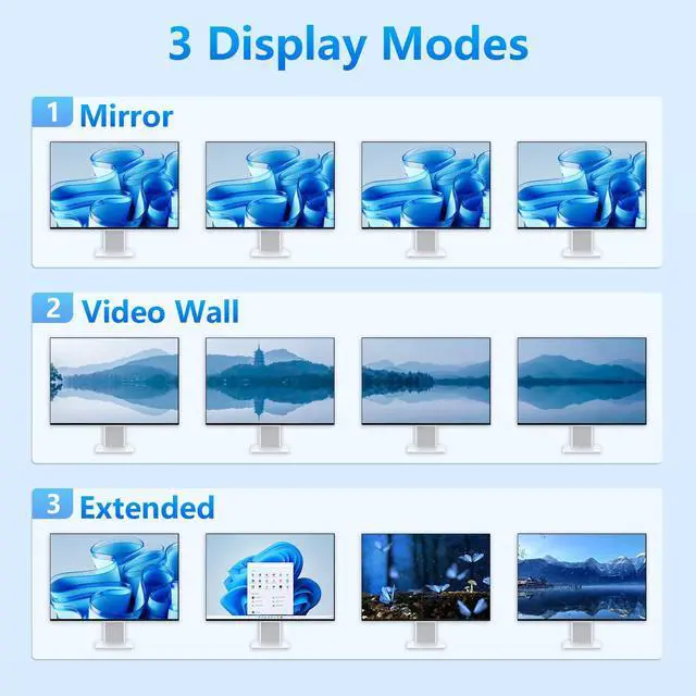 Flexible Multi-Monitor Setup: Whether you need two, three, or four screens, this switch adapts to fit your needs. Enjoy options for extended, mirrored, or spliced displays up to 4K.