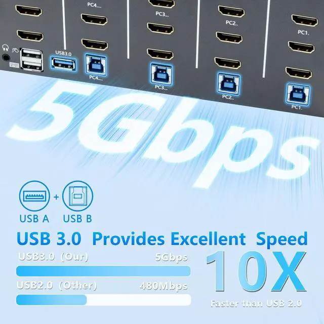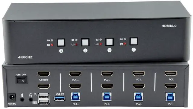 Multi-Device Control: Share an HDTV or display, USB keyboard, and mouse across four HDMI 2.0 /USB 3.0 computers and devices for streamlined control. ^^ USB 3.0
