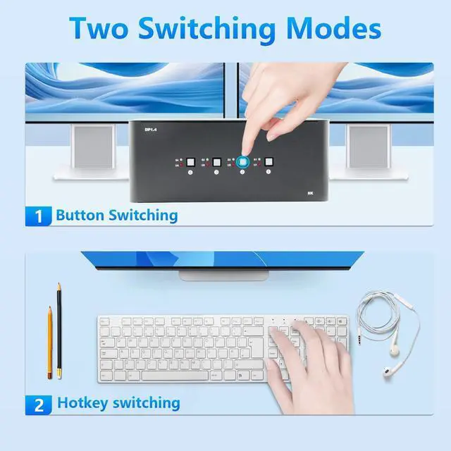 ^^ Flexible Switching Options: Switch between connected devices using front-panel push buttons or convenient hotkey controls, providing quick and seamless operation. Easily select the desired input with dedicated push buttons or intuitive multi-mode hotkey control for enhanced functionality. ^^ Wide