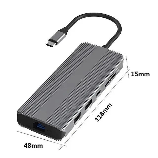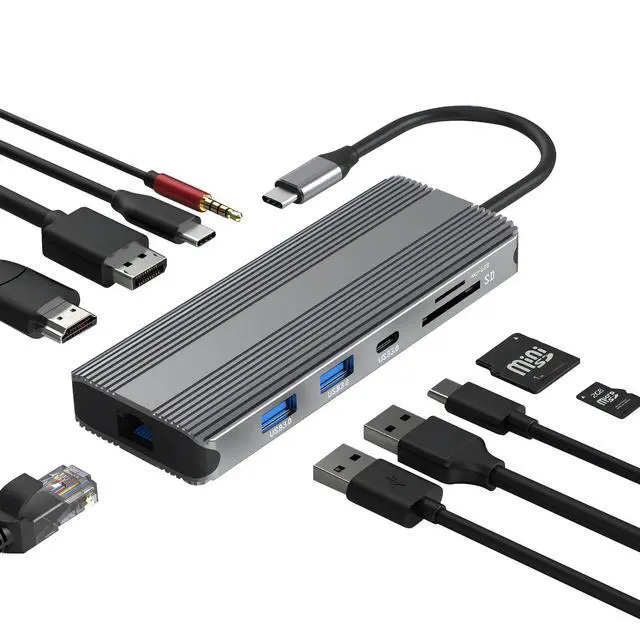 Comprehensive Input Interface: This 10 in 1 docking station features a Type-C interface for versatile connectivity with compatible devices. It comes with 1xHDMI (8K@30Hz), 1xDP (8K@30Hz), 2xUSB 3.0 (5Gbps), 1xRJ45 (1000M), 1xType-C 3.0 (5Gbps), 1xType-C (PD 100W), 1xAudio, 1xSD/TF ( 3.0 ) ^^ High-Speed
