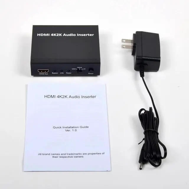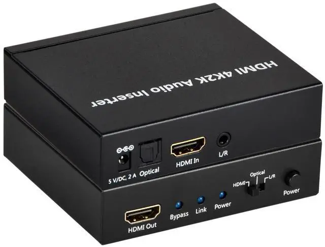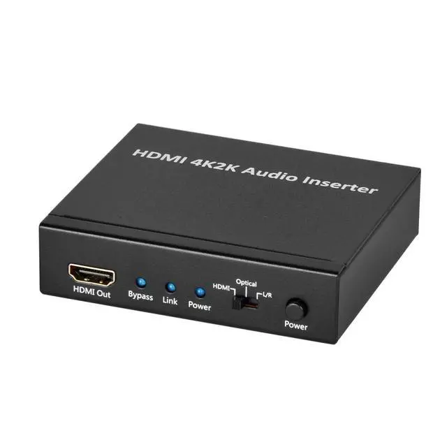 The HDMI 4K2K Audio Inserter lets you insert an external audio signal into your HDMI or DVI (with DVI to HDMI adaptor) signal path. The unit allows you to insert stereo or multi-channel surround sound signals to give users the capability to select audio formats while extending your HDMI signal. Further, both input and output HDMI support HD resolution up to 3D and 4K2K allowing a full enjoyment over synchronize video and audio.