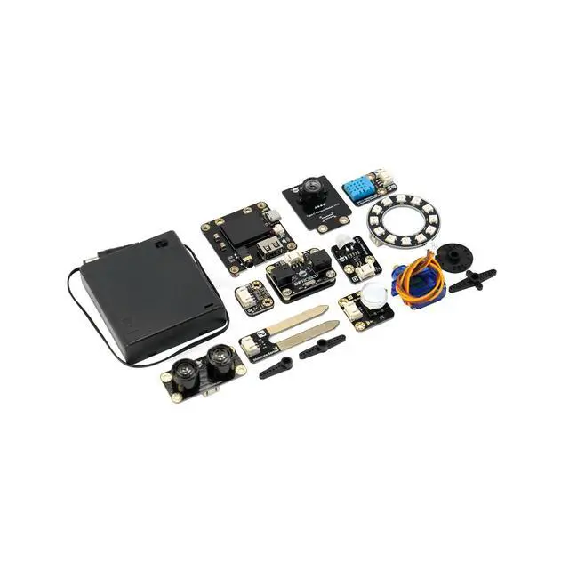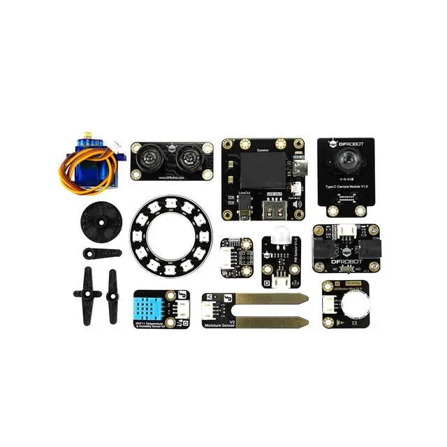 MULTIMEDIA & AI INTERACTIVE MODULES]: Empower projects with a rich selection of hardware, including a USB Camera for AI vision and a Speaker for voice interaction. Unlike basic kits, this bundle features heavy-duty components like a DC Water Pump, Metal Servo, and Relay, alongside Gravity sensors (Color, Ultrasonic, Soil, PIR). Combined with the UNIHIKER M10's built-in touch screen and Wi-Fi, the possibilities for smart projects are endless.