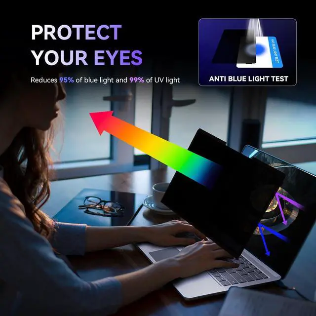 [(Superior Privacy Protection)] - The multi-layer film limits the viewing angle to +/- 30 degrees, completely preventing others from peeking into your screen. The light-transmit