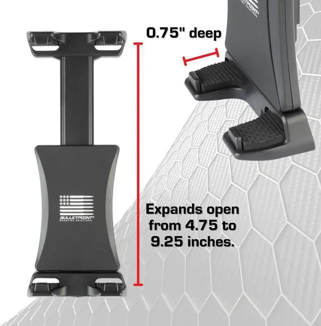 • [HEAVY DUTY TABLET MOUNT FOR TRUCK] The ultimate truck tablet holder solution by Bulletpoint Mounting Solutions is compatible with most tablets 4.75 to 9.25" tall and up to 0.75" deep.