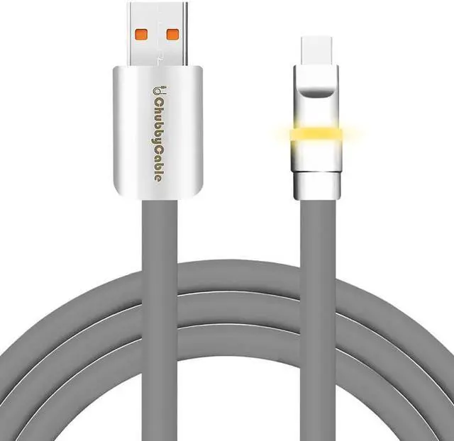 chubbycable Neon Chubby - Fast Charge Cable with Smart Light RGB Color Gradual Light Up LED USB Charging Cable, Gray, USB-A to Type-C, 9.8 FT