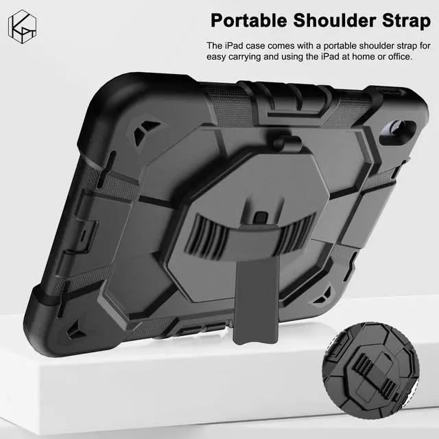 [Soft Strap & Portable Shoulder Strap & Rotating Stand] Provide the protection and convenience when you play or work with case for iPad. Hang it anywhere for your entertainment, makes you using case for iPad 10th Generation easily. 360 Degrees rotating Kickstand provides convenient viewing, with soft strap, easy to use your case for iPad in your outdoor