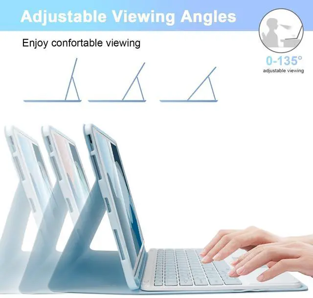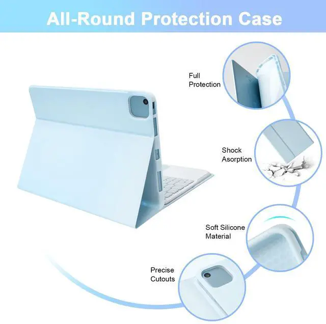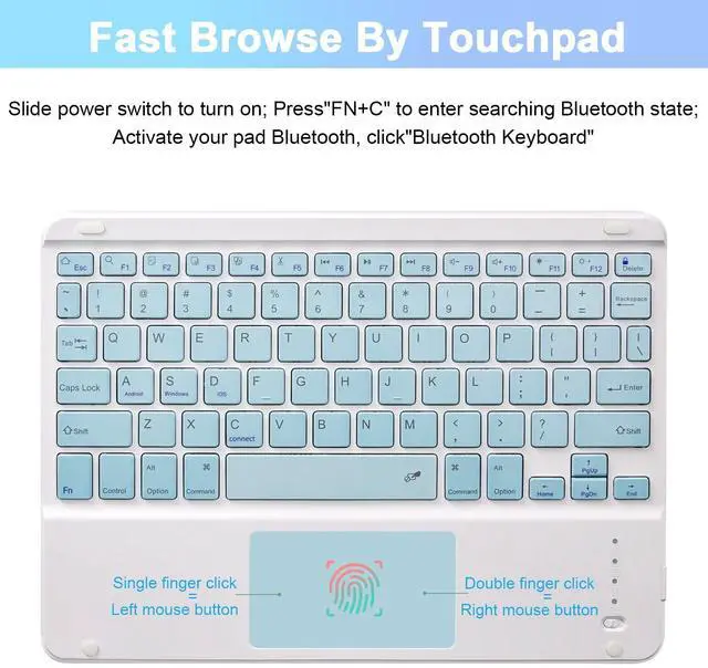 [Magnetic Keyboard with Touchpad]: This case with keyboard built-in sensitive trackpad, allows you enjoy the convenience of performing multi-finger gesture control(like tap, swipe, scroll and switch apps), which level up your productivity when browse the web, edit documents and more. and up to 10M connection range. NOTE: To use the keyboard touchpad, please go to the tablet accessibility setting to turn on the assistive touch function first! IOS 13.2.2 and above be supported.