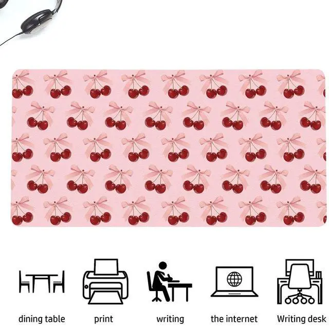 Unique cute kawaii cherry bow pink leather desk mat design, it is a very creative and practical present for friends and family