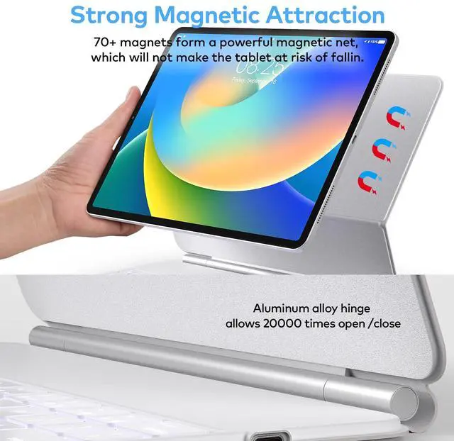 Some of the amazing features of this product: Easy to use and smart, open the cover to power on. Precision multi-touch track-pad, you can tap, swipe, pinch, or spread one or more fingers to perform useful actions Easy-Set Magnetic Stand, can offer a Mac-style workstation Well-made keys with key shortcuts, provides you the laptop typing experience Flexible built-in-hinges, support 20000 times open/close Ultra-slim and lightweight, easy to carry for travel Compatible with iPad Air 13 2024 iPad Pro the 3rd Gen 12.9 (2018) A1876 / A2014 /A1895 iPad Pro the 4th Gen 12.9 (2020) A2233 / A2229 iPad Pro the 5th Generation (2021) A2378, A2379, A2461, A2462 iPad Pro the 6th Generation (2022) A2436, A2437, 2764, A2766 Long-lasting battery, ready to take on all of your daily commitments Backlit keys, let you work comfortably at day and night