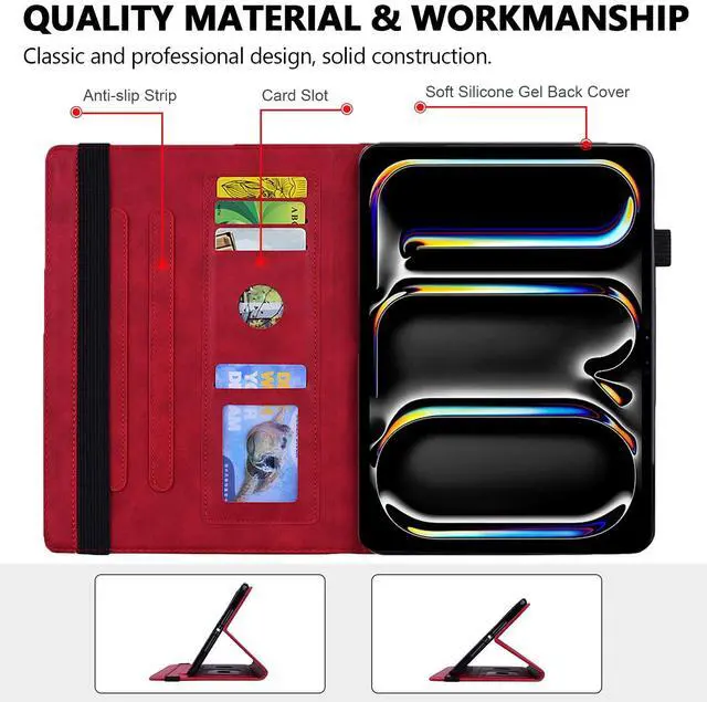 iPad Pro 13" M4 Textured PU Leather Flip Cover Case with Elastic Band, Credit Card Slots and Apple Pencil Holder