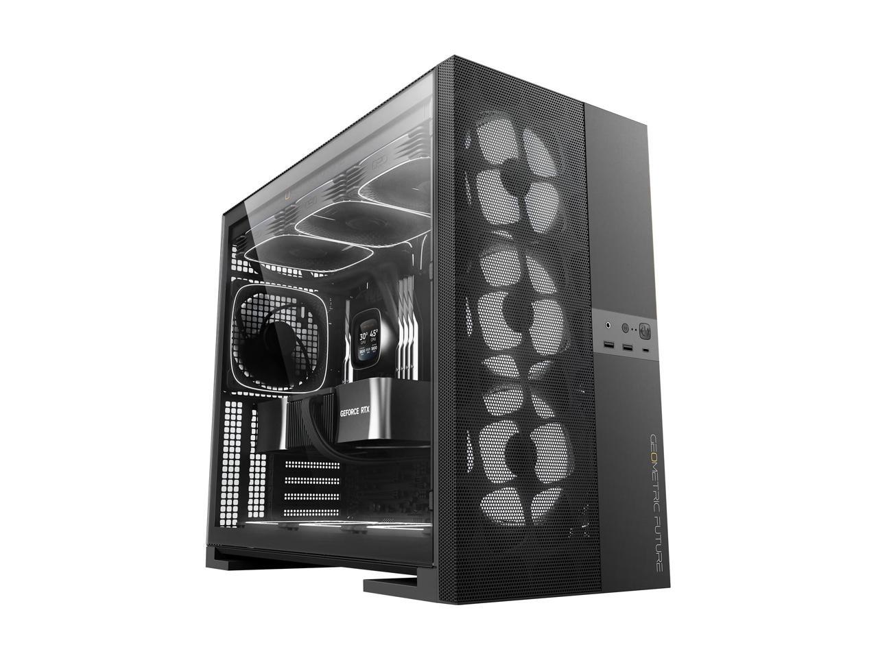 Geometric Future M5 Vent Mesh Panel Tempered Glass Mid Tower, E-ATX/ATX Gaming Case, High Airflow, 1.2mm Steel, Type C, Support 420/360 Radiator, ARGB PWM 140m fan x 5 Pre-Installed, Black, GEO-M5VF-B