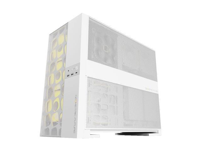 Geometric Future M5 Vent Mesh Panel Tempered Glass Mid Tower, E-ATX/ATX Gaming Case, High Airflow, 1.2mm Steel, Type C, Support 420/360 Radiator, ARGB PWM 140m fan x 5 Pre-Installed, White, GEO-M5VF-W