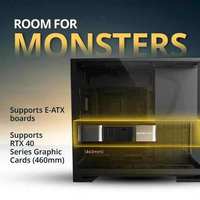 ^^ Hardware Compatibility: Fits E-ATX motherboards, GPUs up to 460mm, and modular PSUs up to 160mmgiving power users full flexibility for high-performance components.
