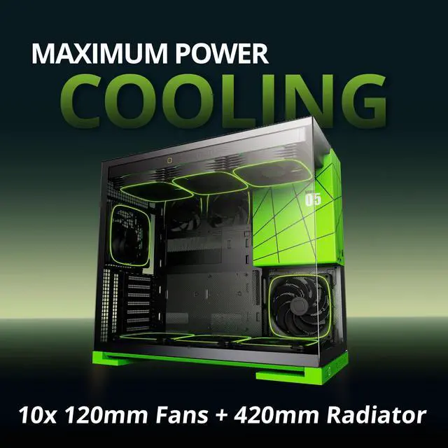 ^^ Extreme Cooling Reads: Supports up to 420mm radiators and 10x120mm fans. Designed for advanced liquid or air cooling setups to meet enthusiast-grade thermal demands.