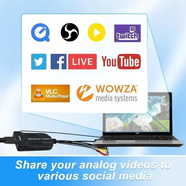 AV s video capture card Our USB 2.0 Video Capture Adapter provides a link between a PC and a video device with RCA connector or S-Video connector, such VHS, VCR, DVD,Hi8, Camcorder.