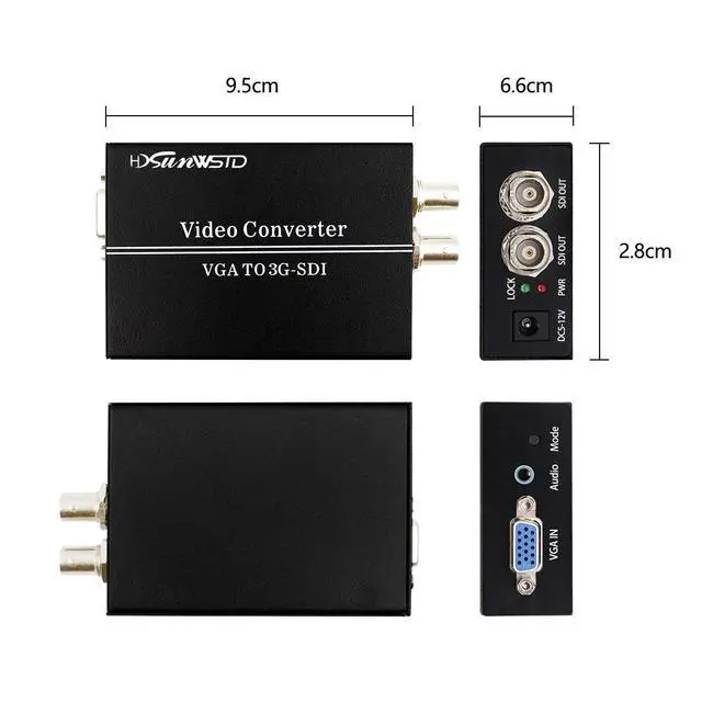 Output port: 2*SDI port (BNC port) ^^ Support 2 ports of the SDI(SD-SDI/HD-SDI/3G-SDI) signal output ^^ Support VGA signal input ^^ VGA to SDI Converter is used to convert VGA video source to SD/HD/3G-SDI signal.