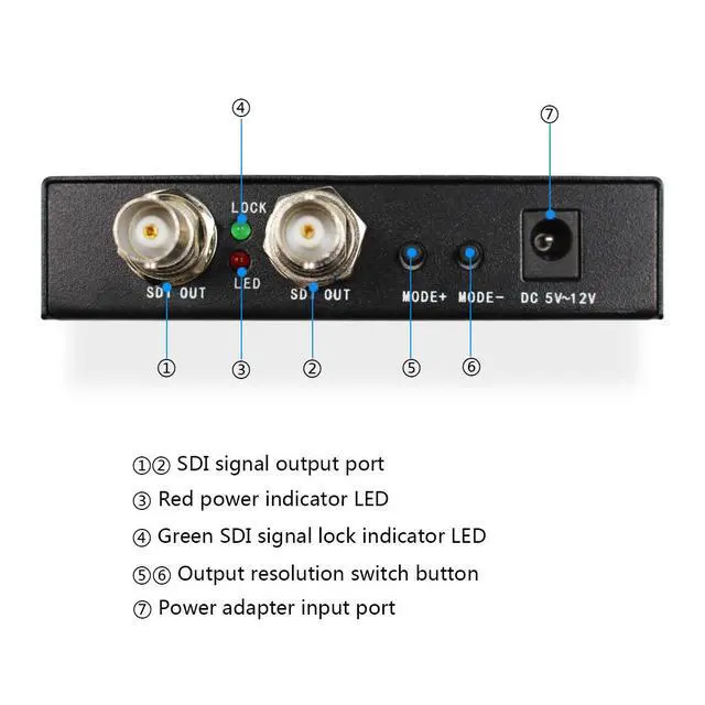 POWER LED: This red LED illuminate when the device connecting with the power supply. ^^ The 3G HDMI to SDI Scaler Converter enables HDMI signals to be shown on SDI display, For professionals this means that it is now easier to convert your high HDMI signal with audio to SDI for long distance transmission and display your work on SDI display.