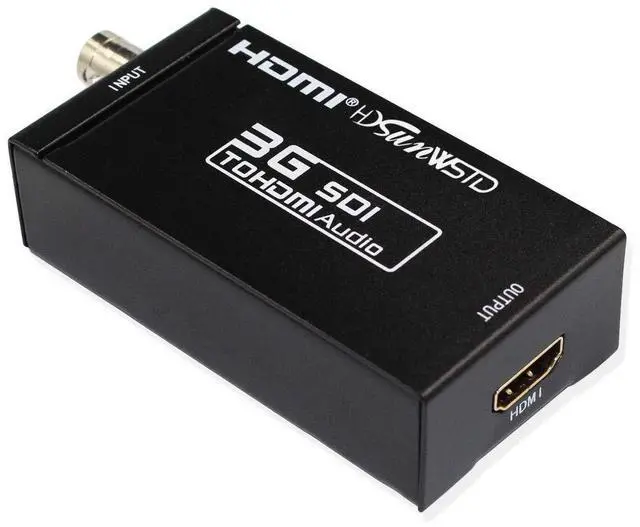 Output Port: 1 x HDMI. Please check your device technologies before you order it. ^^ *Convert HD-SDI and 3G-SDI signals to be shown on HDMI displays/monitor. ^^ *Perfectly converts SDI signal and supports SMPTE 425M, SMPTE 424M, SMPTE 292M, SMPTE 259M-C ^^ *Connect with other units to extend your signal over long distances. ^^ *What you will get: 1*SDI to HDMI converter, 1*US power adapter, 1*user manual.