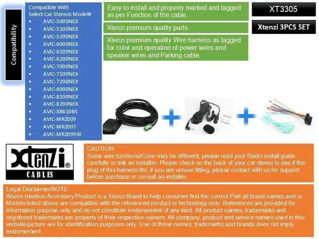 The 3PCS Set Includes: Xtenzi GPS Antenna (XT91830). Xtenzi Wire harness Power (XT91011) Xtenzi Microphone Mic Assembly (XT91501).