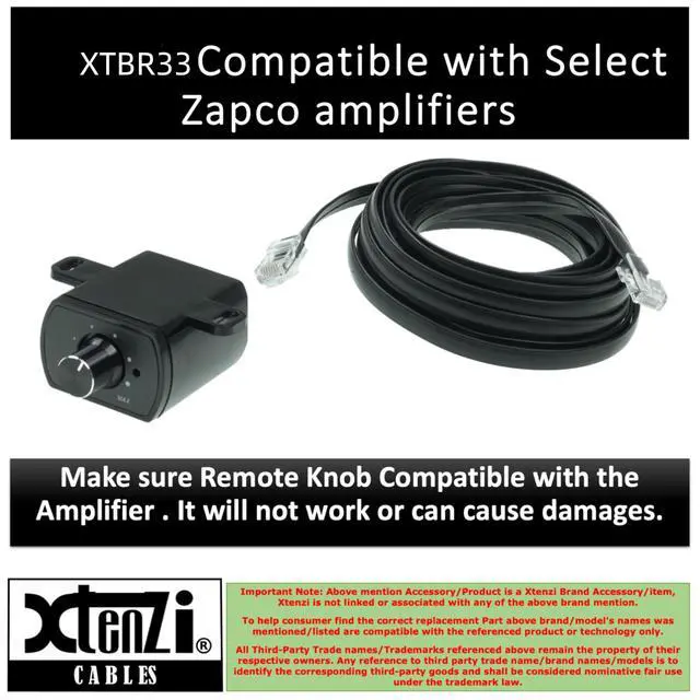 Xtenzi Bass Gain Volume Knob Control Replacment KNOB for Z-BR II Remote Level Control XTBR33 ^^ Optional Wired Remote Volume Control Compatiable with Z-II Series, Z-SP Series amplifiers ^^ Controls the bass/gain from the front seat or remote location from amplifiers, without having to reach for the amplifier. ^^ Allows You to Adjust Your Bass Level Quickly and in the Most Ideal Location, Simple 1-wire connection gets you up and running in a flash. ^^ High Quality Product Remote Unit Comes with 5-meter/16 Feet/196-inch remote connection wire and bass knob and mounting Screws.