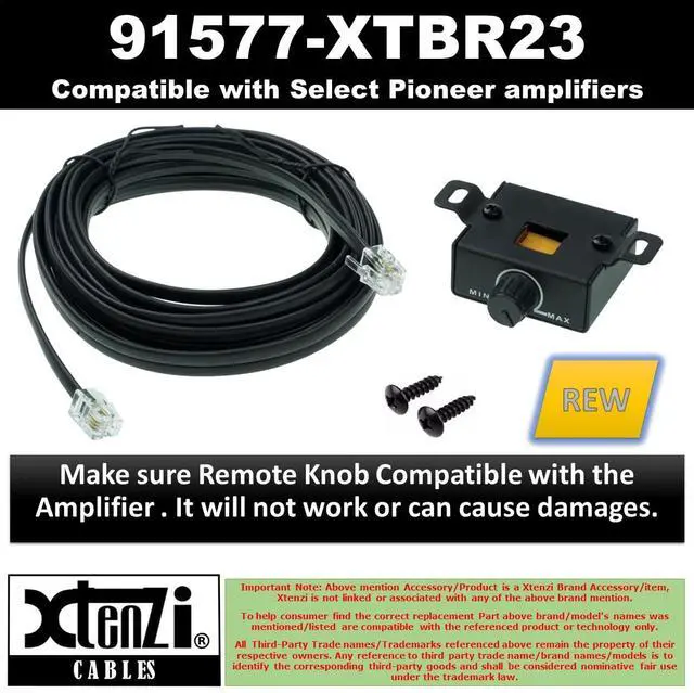 Xtenzi Brand Remote Amplifier Level Controller Optional bass remote XTBR23-91577 ^^ Optional Wired Remote Volume Control Compatible with Select Pioneer Amp. GM-D8701, GM-D8704, GM-D9701, GM-D9705, GM-DX871, GM-DX874, GM-DX971, GM-DX975 ^^ Controls the bass/gain from the front seat or remote location from amplifiers, without having to reach for the amplifier. ^^ Allows you to adjust your Bass Level quickly and in the Most Ideal Location, Simple 1-wire connection gets you up and running in a flash. ^^ High Quality Product Remote Unite comes with 5-meter/16 Feet/196 inch remote connection Flex cable wire and bass knob.