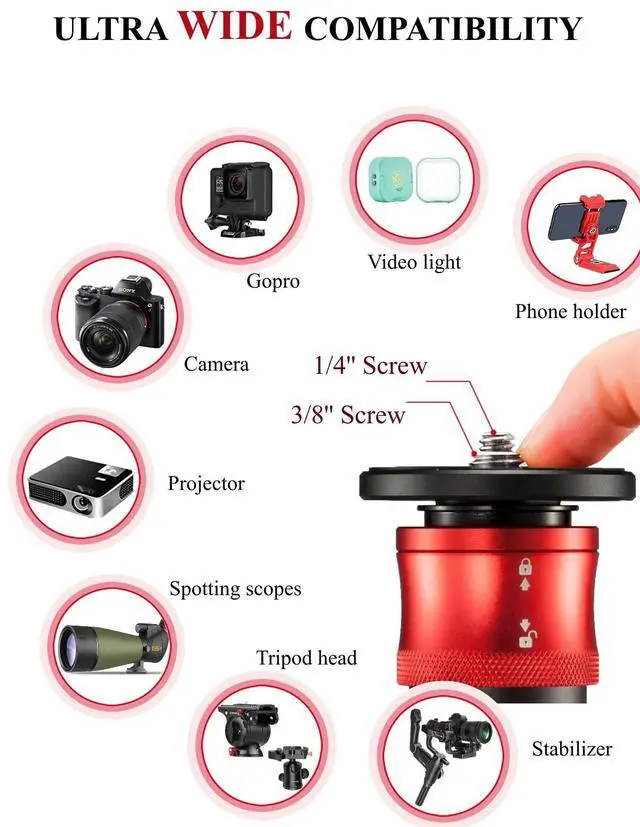 Universal Mini Tripod: With 1/4"-20 and 3/8-16 convertible mounting screw, suitable for Camera, GoPro, projector, gimbal stabilizer, spotting scopes, microphone, video lights, etc.