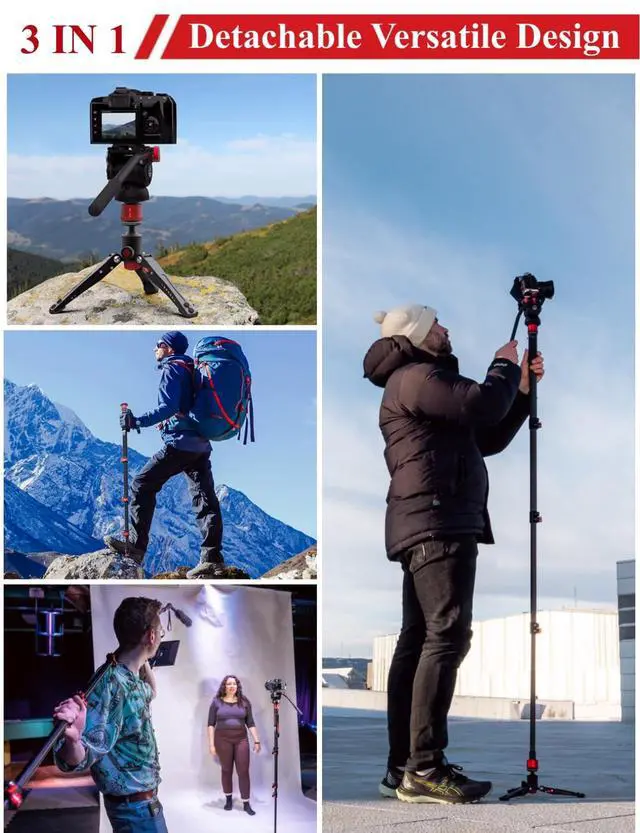 Versatile Detachable Monopod Camera Stand: The base can be used as a tabletop mini tripod or low profile base; The tube can be used as stabilizer extension and hiking stick.