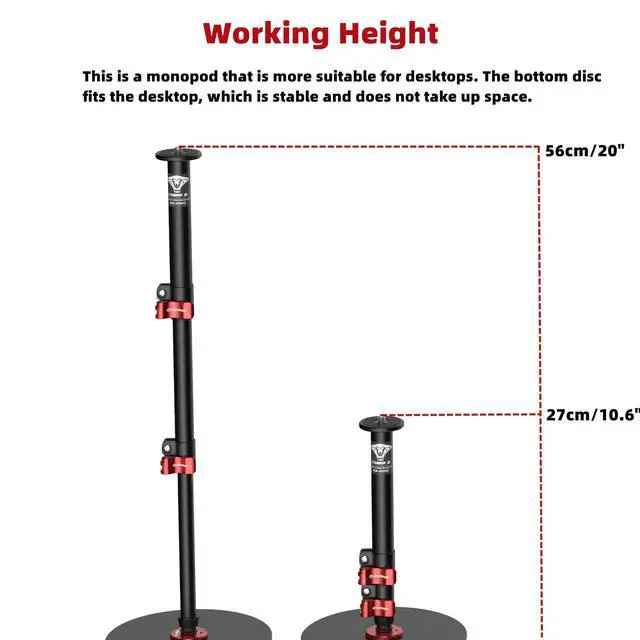 Adjustable Height Range: The monopod can be adjusted freely from 10.63 inches to 22.05 inches, allowing you to set the perfect height for desktop live broadcasts, video conferences, or photography. ^^ Space -