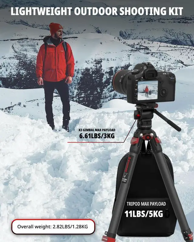 Ultra-Lightweight Travel KitEngineered for modern explorers, the Gazelle TC3B tripod redefines portability with its featherlight 2.8 lbs/ 1.28KG frame (including K3 head). TC3B tripod can support an impressive 11lbs/5KG payload. Crafted to effortlessly fit inside a standard 20-inch carry-on, this space-efficient companion disappears in your luggage while standing ready to stabilize your vision. Perfectly balancing minimalist design with robust functionality, it delivers professional-grade performance for photographers seeking freedom in lightweight travel adventures. ^^ Engineered for EfficiencyThe innovative leg system features an intuitive quick-lock mechanism with heavy-duty reinforced buckles, enabling seamless angle selection on 21, 45 and 21.