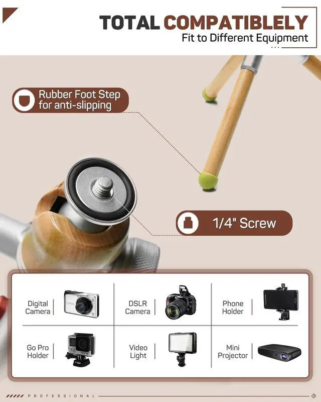 ^^ Unique Combination - The professional camera desktop mini tripod design carefully combines natural and man made materials resulting in a minipod that is aesthetically pleasing, warm to the touch and easy to use. ^^ Portable Mini Tripod But Powerful - IFOOTAGE tabletop tripod is 0.46 lbs net weight, but it can max load 8.82 lbs for cameras with larger, heavier lenses. Portable and lightweight, best ideal for travel and outdoor. ^^ Universal Compatibility Mini Tripod - IFOOTAGE small tripod with 1/4"-20 screws. Works well with digital cameras, smartphones, GoPro action camera and projectors.