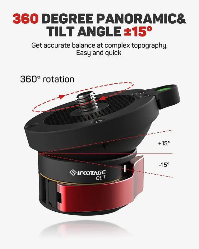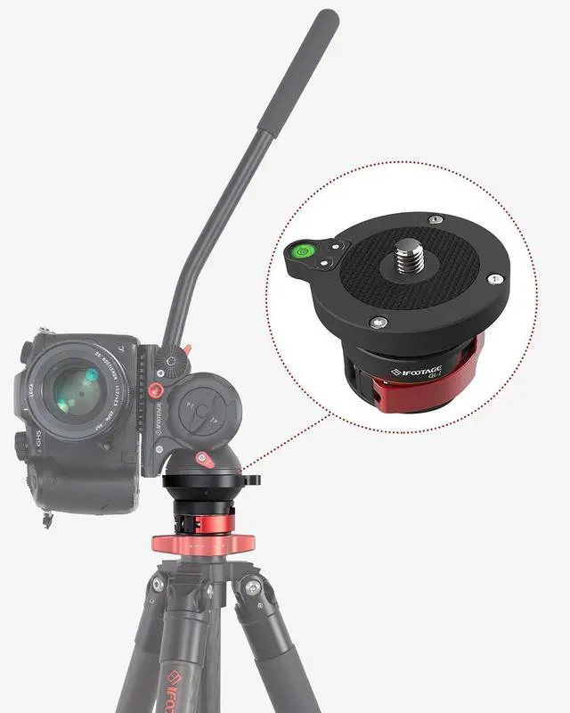 Tripod Leveling Base: IFOOTAGE professional camera tripod panoramic head, 360 degree rotating half ball head with an adjustable tile of 15 degrees provides quick level adjustment. You can accurately control the photography angle. ^^ Strong and