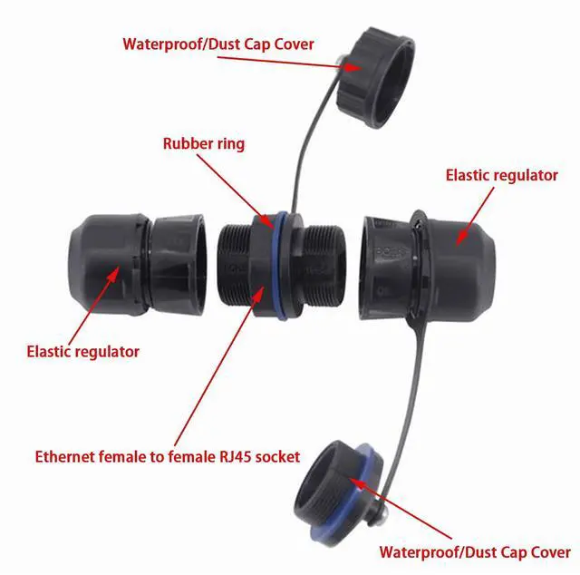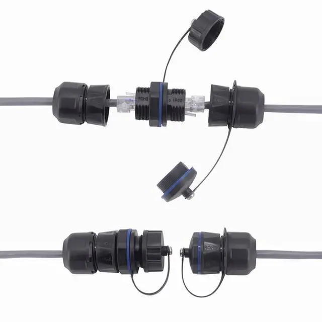 The female to female RJ45 ethernet lan cable coupler is used to turn the standard CAT5/5e patch cord into the waterproof type for the ethernet connecting in the harsh industrial or outdoor environments. A gasket seal provides optimum protection from moisture and other contaminants with an IP67 rating. Using the standards based RJ45 connection system insures compatibility with existing hardware.