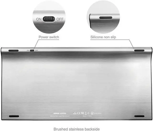 Stainless steel material gives heavy duty feeling and the low-profile keys offer quiet and comfortable typing.
