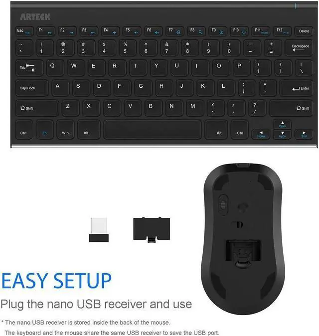 Just simply insert the nano USB receiver (stored in the back of the mouse) into your computer like desktop or laptop, then the keyboard and the mouse can be used instantly. No need driver. The keyboard and mouse use the same USB receiver.