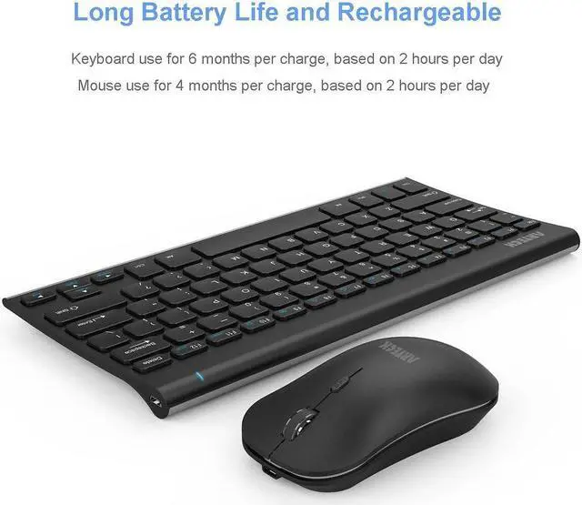 Built-in industry-high rechargeable Li-polymer battery provides 6-month for the keyboard and 4-months for the mouse use on a single charge. (based on 2 hours non-stop use per day)
