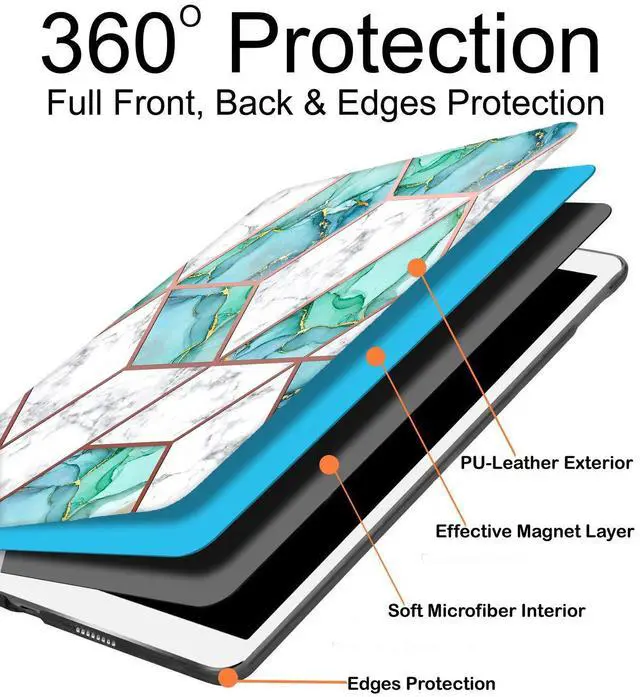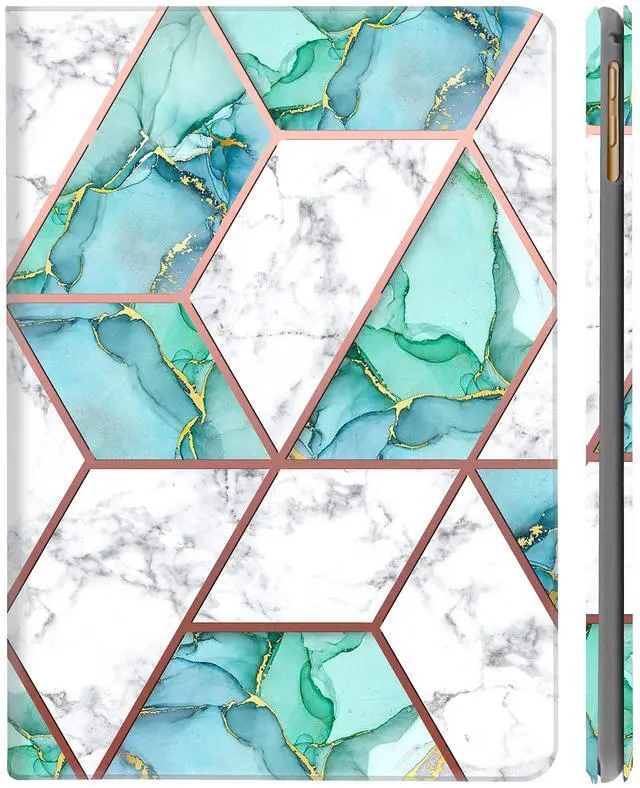 DuraSafe Cases for iPad Air 1/2 Gen & 5/6 Gen- 9.7" A1893 A1822 A1566 A1474 MRJN2LL/A MR7G2LL/A MP2F2LL/A MP2G2LL/A MD785LL/A MD788LL/A Printed Cover with Auto Wake/Sleep Feature - Green Marble