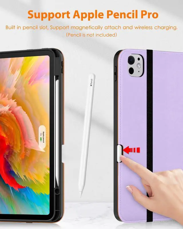 Built-in Pencil Holder - Securely carries and protects your pencil wherever you go. A hole has been designed at the back of the pencil holder that you can easily push pencil out without taking off your iPad Pro 13 inch M4 case