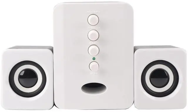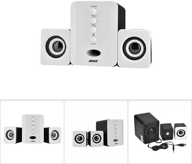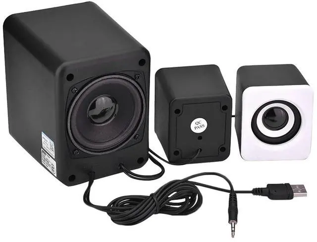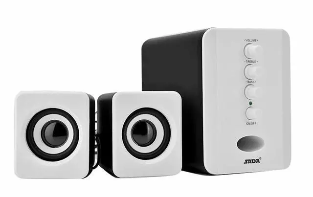 This is a professional speaker with superior sound quaility, composed of 1 main speaker and 2 side speakers. This speaker will let out a steady and undistorted bass sound. And you can adjust the volume, bass and treble by rotating the knobs, this speaker will create different when playing different kinds of music. It may be a companion for your cellphone, tablet, laptop, or desktop PC!