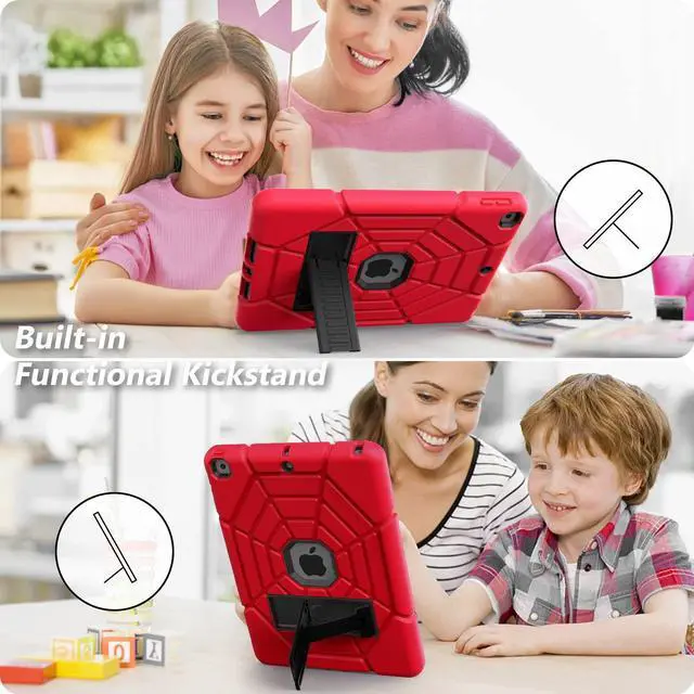 Grifobes for iPad 6th/5th Generation Cases 2018/2017, for iPad Air 2 Case 2014 9.7 inch, Heavy Duty Shockproof Rugged Protective i Pad 5 6 Gen 9.7" Case with Stand for Kids Boys(Red+Black)
