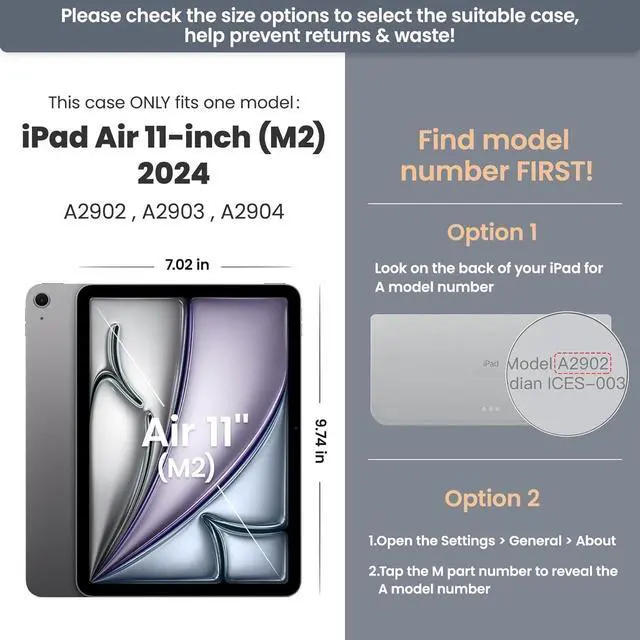 Compatible with iPad Air 11 7th/6th Generation : Only designed for iPad Air 11 Inch M3/M2 (2025/2024) (Model: A2902/A2903/A2904).NOT compatible with any other model devices.
