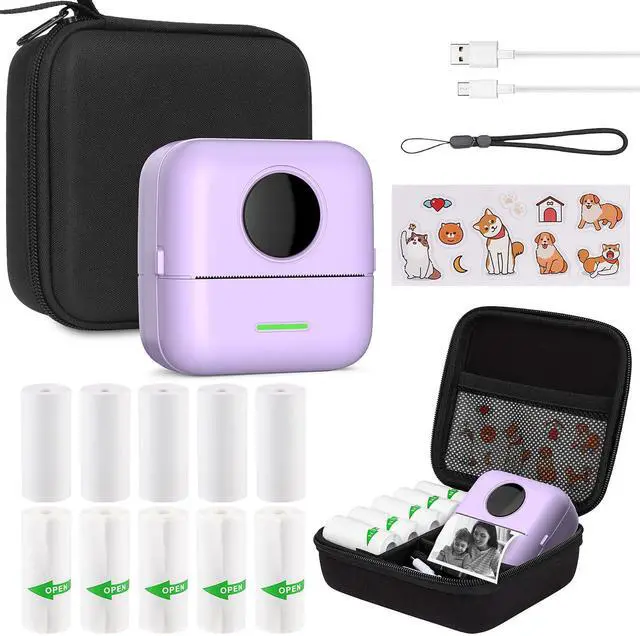 2024 Mini printer with protective case: HUIJUTCHEN Mini Sticker Printer Size: 82*82*45mm, Weight Approx:210g.There are carrying case, 5 rolls of thermal paper + 5 rolls of self-adhesive thermal paper and extra 1 roll, stickers, USB cable, lanyard and other complete accessories. The carrying case is large enough to flexibly store the printer and all accessories, and also protects the printer from dust, dirt, bumps, drops and scratches. This product is an excellent tool for mobile printing.