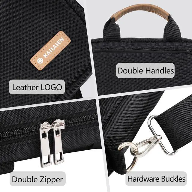 Kailaien 10-13 Inch Tablet Sleeve Bag, Ipad Bag for 13 In/11 in New iPad Pro M4 & 13 in Air M2 2024, iPad Pro 12.9 M2&M1, Ipad 10.9, Galaxy Tab S8+/S9+ 12.4, with Removable Shoulder Strap (Black)