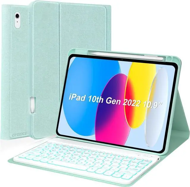 OYEEICE for iPad 10th Generation Case with Keyboard 10.9 Inch - 7 Color Backlit Wireless Detachable Folio Keyboard Cover with Pencil Holder for New iPad 10th Gen 2022 - Green