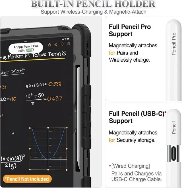 Versatility Stand & Pencil Holder: With 360deg rotating adjustable kickstand stable at multi-angles, case for iPad Air 13 inch M3 M2 for viewing, typing or movie watching; With pencil holder easy storage for note-taking, case for iPad 13 Air case suited for classes/meetings, works or play with-kid