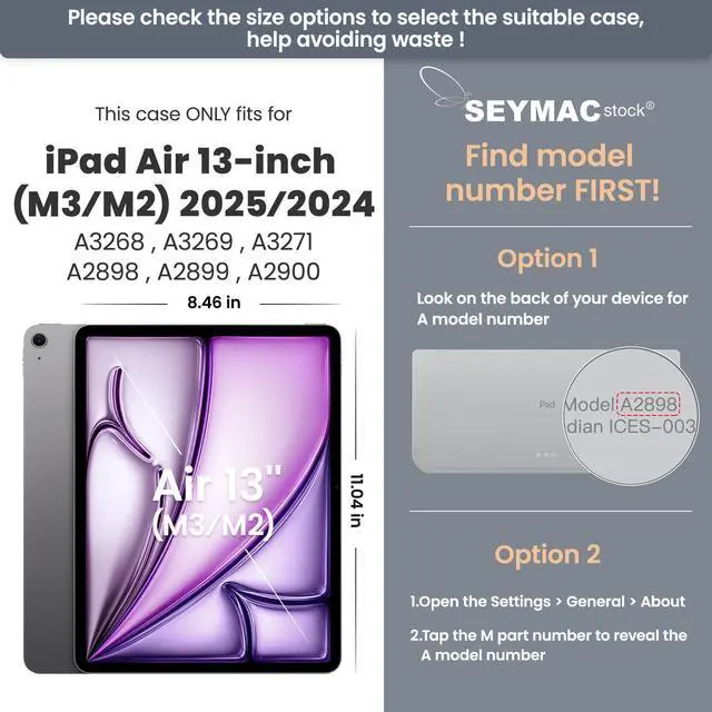 Compatibility: Protective Case for iPad Air 13 inch M3 2025 release, for iPad Air 13 inch M2 2024 release, for iPad Air 6th Generation 13 inch, Model: A3268 / A3269 / A3271 / A2898 / A2899 / A2900