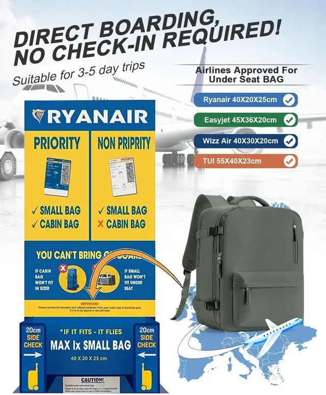 [(Meet the boarding criteria)] This backpack meets the boarding luggage size requirements of most airlines, ensuring that your backpack can be taken directly on the plane to avoid the trouble of shipping, and is equipped with a backpack strap on the suitcase handle for easy carrying.