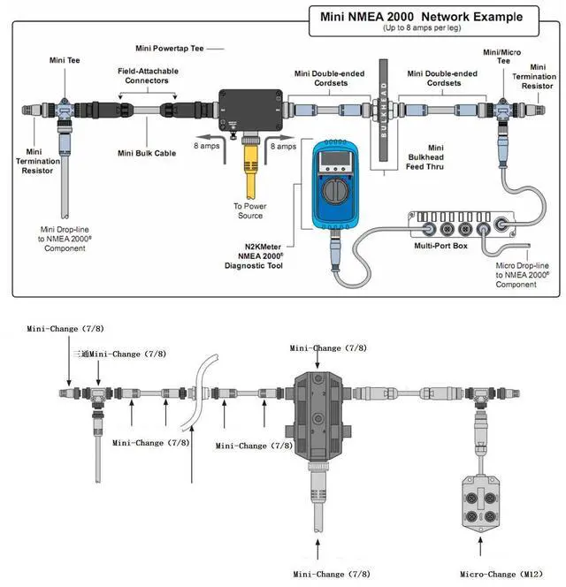 • Marine For Nmea 2000 Starter Kit, Backbone Starter Kit With Male Female Terminator T Connector For Lowrance Networks Marine Accessory