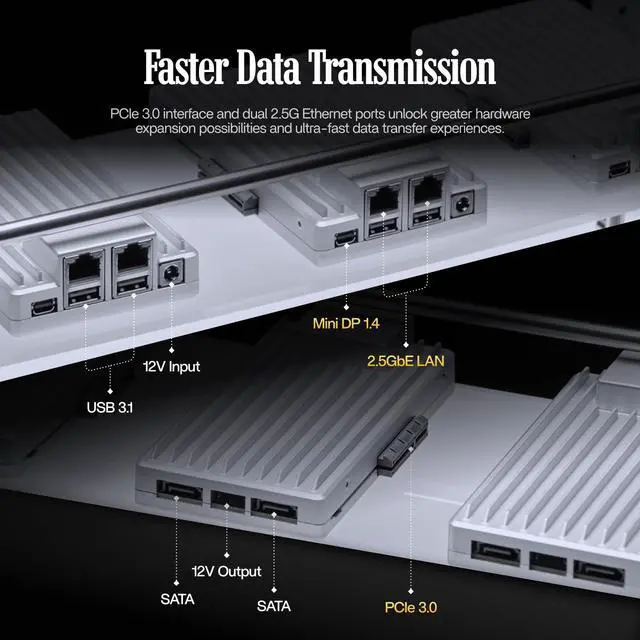 Supports 10GbE NICs, NVMe adapters, GPUs, and AI accelerators to build scalable home servers, homelabs, and advanced self-hosted systemsoffering greater expansion flexibility than typical SBCs, Mini PCs, and entry-level NAS devices. ^^ Native Dual SATA & Dual 2.5G bE Networking - Built with server-class storage and networking I/O, ZimaBoard 2 integrates dual SATA ports for direct HDD/SSD connectivity and dual 2.5G bE Ethernet for high-throughput, low-latency networking. This architecture enables reliable DIY NAS, fast storage, routing, and multi-service home server deploymentswhile avoiding USB-based performance constraints common in ARM SBCs, Raspberry Pibased setups, Mini PCs, and entry-level NAS devices.