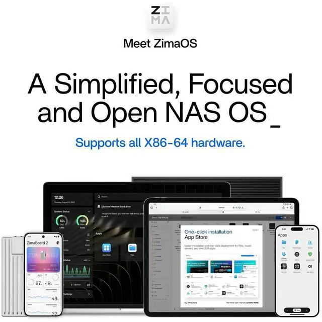 ^^ ZimaOS Preinstalled + Wide OS Compatibility - Comes preinstalled with ZimaOS for a clean, ad-free private cloud experiencecentralized file dashboard, automatic backups, P2P downloads, private photo/video sharing, 500+ plug-ins, and secure on-device AI that keeps your data at home. Also supports TrueNAS, Proxmox, Debian, Ubuntu Server, pfSense, OpenWrt, and Linux containers, making it perfect for Plex media servers, Pi-hole, firewalls, backups, Docker labs, home-cloud services, and multi-service deployments. ^^ All-in-One NAS, Router, Docker & Homelab Server - Replace multiple devices with one low-power, fanless system.